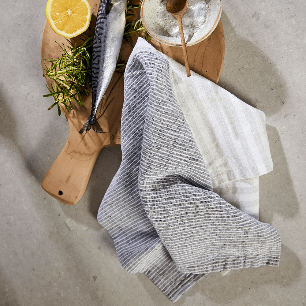 - Vacker kökshandduk med horisontala smala ränder i linne/bomullsblandning med härlig struktur som gör att den bara blir bättre och bättre ju mer du använder och tvättar den, detta är ett litet smycke i ditt kök som lever läge. Välj mellan att stryka slätt eller att torktumla i låg temperatur för en mjuk känsla och en tvättad look.